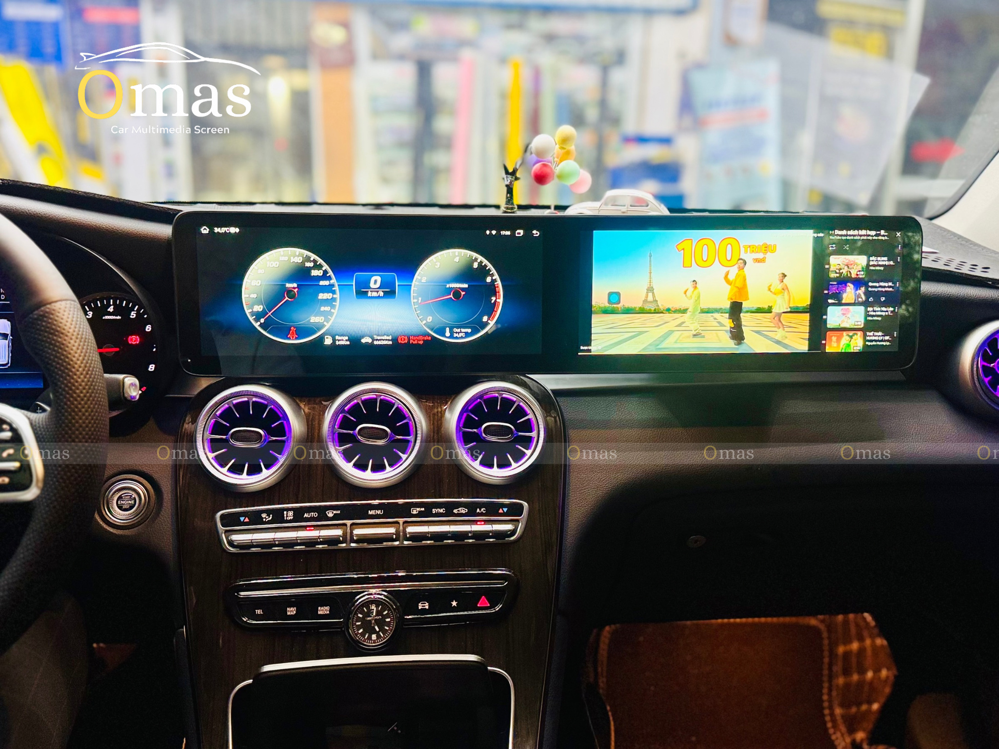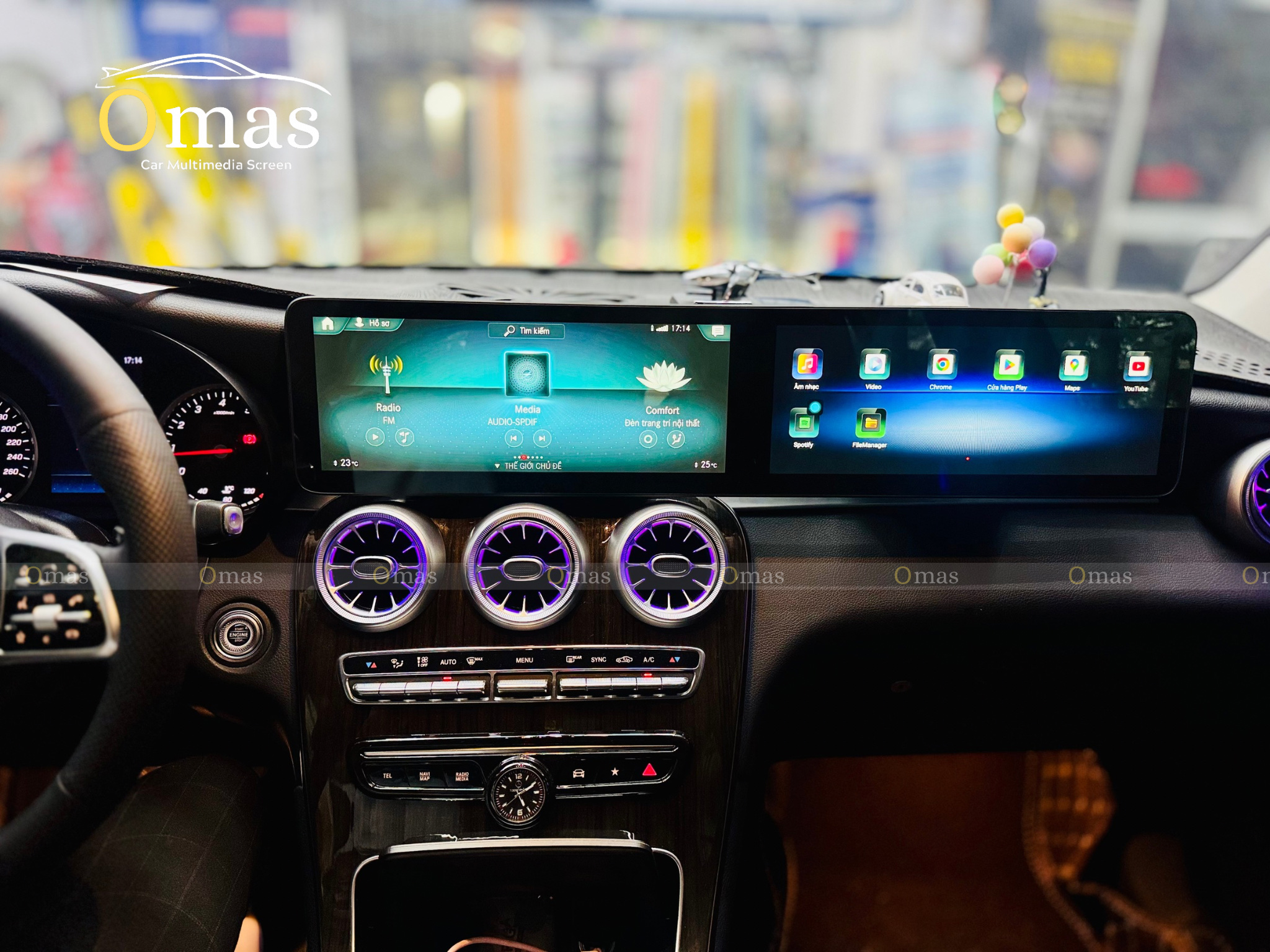 Màn hình kép Omas A12 – 25.6 inch được thiết kế riêng cho Mercedes GLC 2015–2021, mang đến một diện mạo đột phá cho khoang lái.