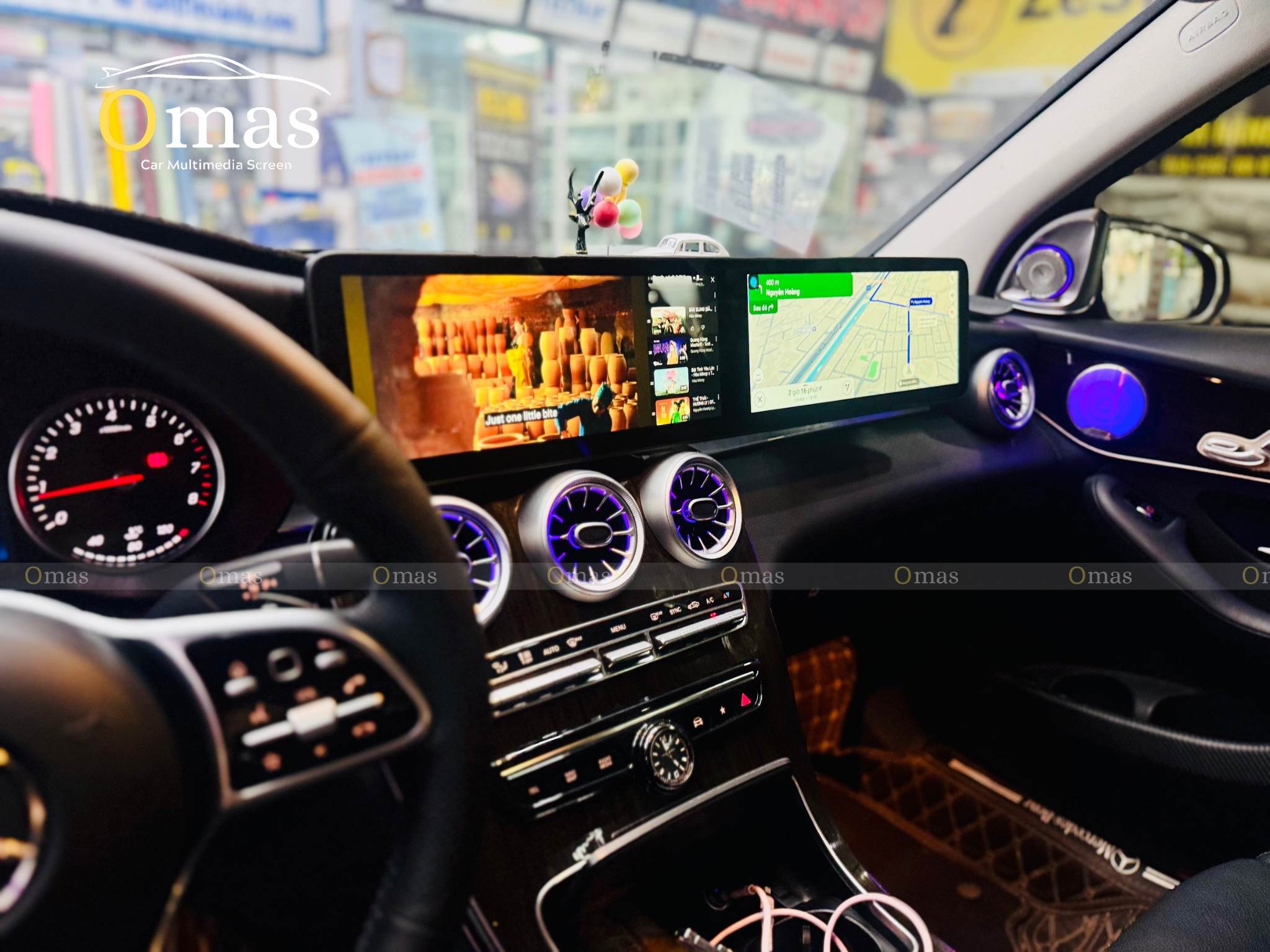 ⭐ Màn Hình Omas A12 Cho Mercedes-Benz GLC (2015–2021) – Màn Đôi 25.6 Inch, Cấu Hình 8GB/128GB, Camera 360 AHD Siêu Nét